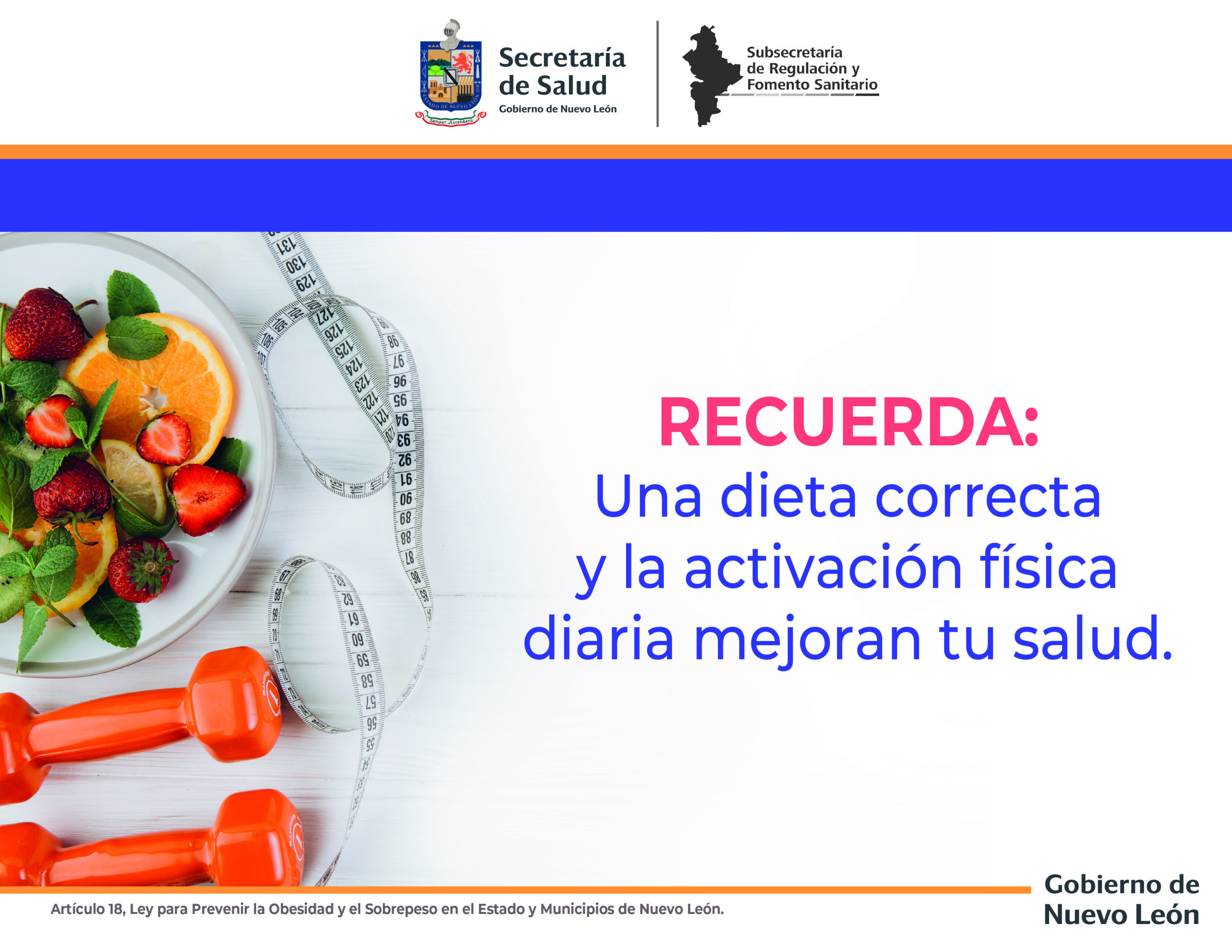 En cumplimiento a la Ley para prevenir la Obesidad y el Sobrepeso en el Estado y Municipios de Nuevo León, se expiden los siguientes carteles, los cuales deberán de ser colocados en establecimientos de venta de alimentos preparados de manera visible para los consumidores.