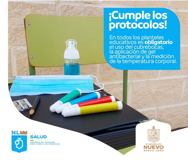 - ¡Cumple los protocolos! En todos los planteles educativos es obligatorio el uso de cubrebocas, la aplicación de gel antibacterial y la medición de temperatura corporal