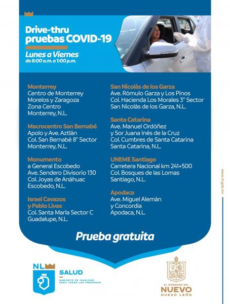 - Unidades Drive-thru para realizar pruebas COVID-19