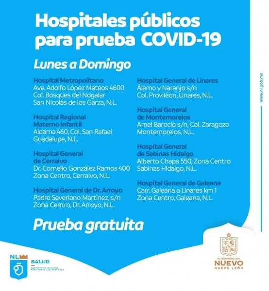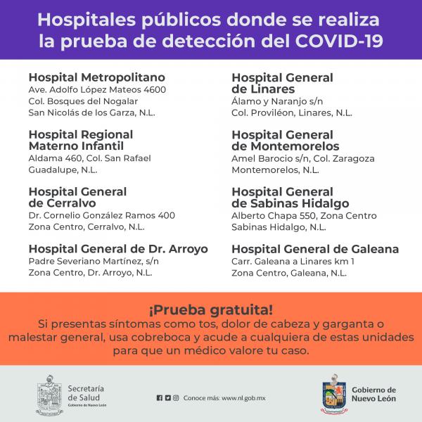 - Hospitales públicos donde realizan la prueba de COVID-19