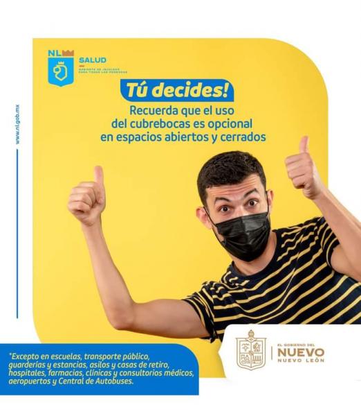 - Recuerda que el uso del cubrebocas es opcional en espacios abiertos y cerrados, excepto...