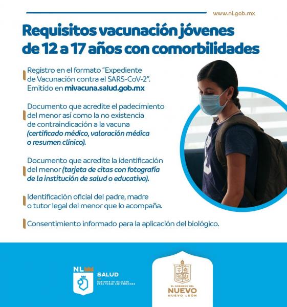 - Requisitos para la vacunación de jóvenes de 12 a 17 años con comorbilidades