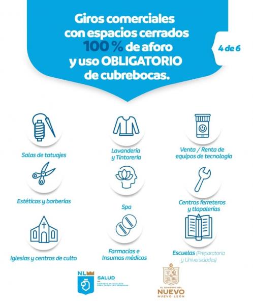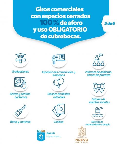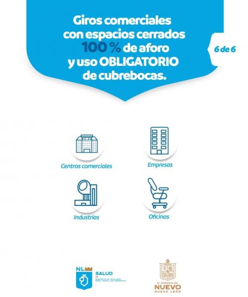 - aforos 100% con uso de cubrebocas obligatorio en espacios cerrados 6