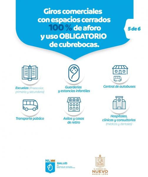 - aforos 100% con uso de cubrebocas obligatorio en espacios cerrados 5