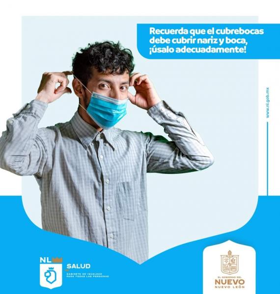 - Recuerda que el uso de cubrebocas debe cubrir nariz y boca, ¡Úsalo adecuadamente!