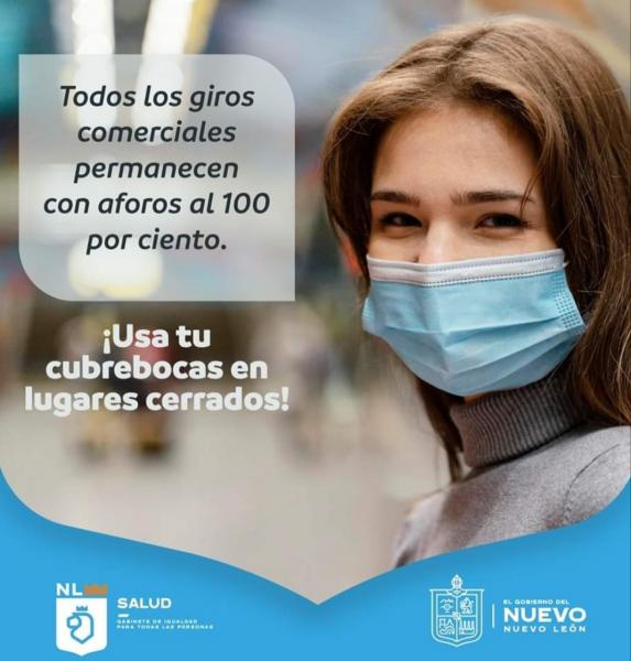 - aforos 100% con uso de cubrebocas obligatorio en espacios cerrados 1