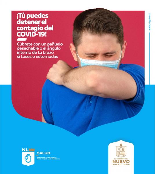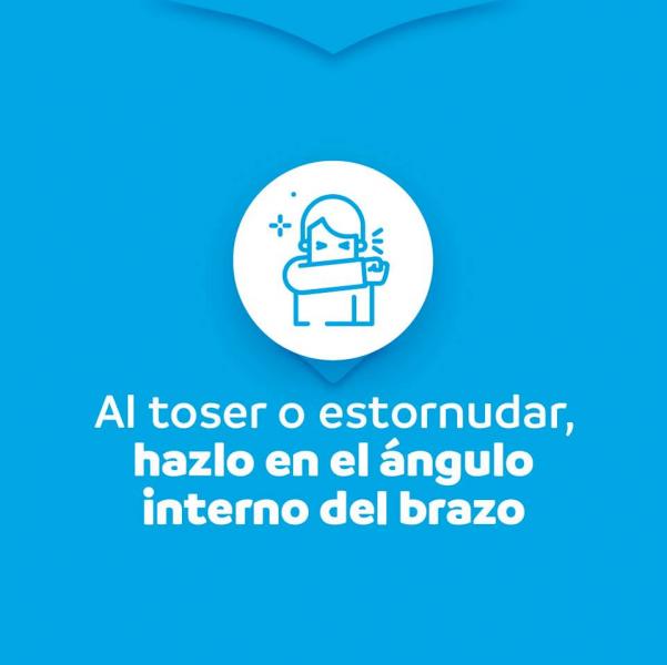 - Cúbrete con un pañuelo desechable o el ángulo interno de tu brazo si toses o estornudas