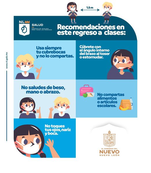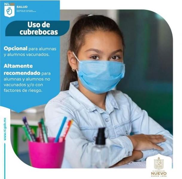 - Recuerda que el uso del cubrebocas es obligatorio en todas las áreas de los planteles educativos