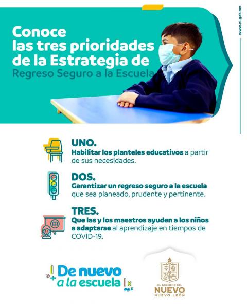 - Conoce las tres prioridades de la Estrategia de Regreso Seguro a la Escuela
