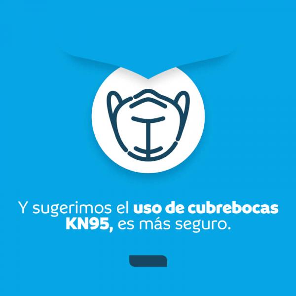 - Sugerimos uso de cubrebocas KN95, es más seguro