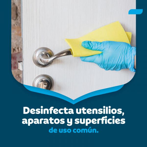 - Desinfecta utensilios, aparatos y superficies de uso común
