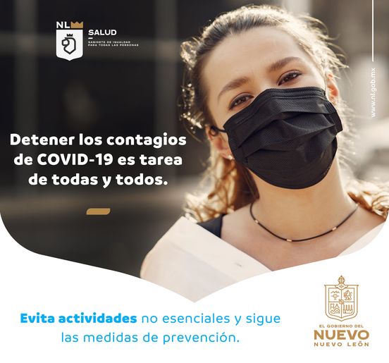 - Detener los contagios del Covid-19 es tarea de todas y todos. Evita actividades no esenciales y sigue las medidas de prevención