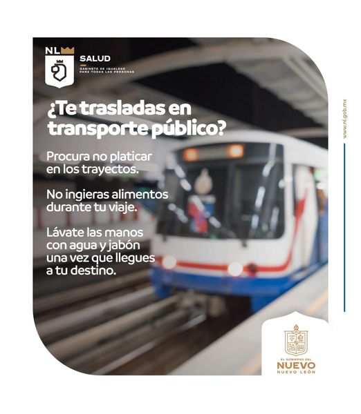 - ¿Te trasladas en transporte público? Procura no platicar en los trayectos. No ingieras alimentos durante tu viaje. Lávate las manos con agua y jabón una vez que llegues a tu destino
