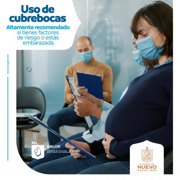 - Uso de cubrebocas altamente recomendado si tienes factores de riesgo o estás embarazada