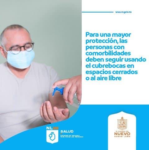 - Para una mayor protección, las personas con comorbilidades deben seguir usando cubrebocas