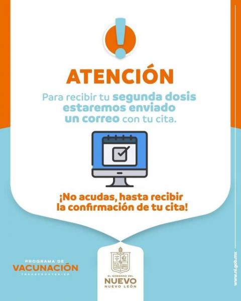 - Atención para recibir tu segunda dosis estaremos enviando un correo con tu cita