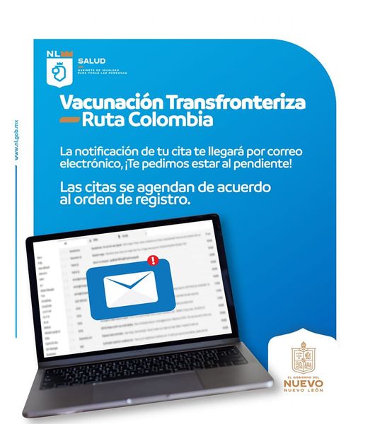 - Vacunación transfronteriza Ruta Colombia La notificación de tu cita te llegará por correo electrónico