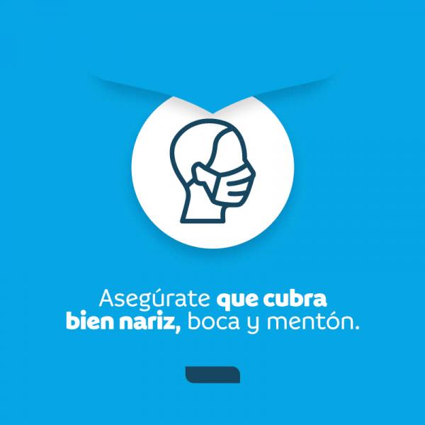 - Usa el cubrebocas correctamente, cubriendo nariz y boca por completo