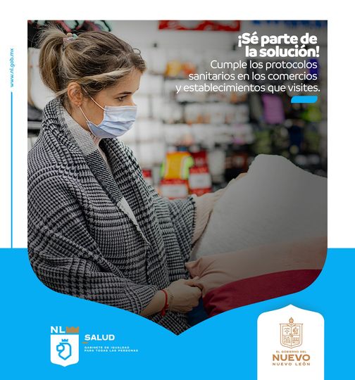 - ¿Sé parte de la solucíon! Cumple los protocolos sanitarios en los comercios y establecimientos que visites.