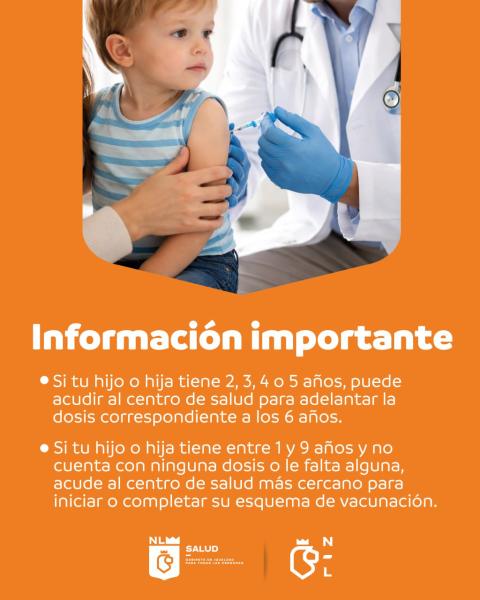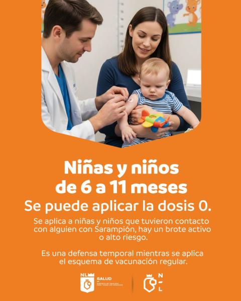 - Protege contra el Sarampión a niñas y niños de 1 año de edad